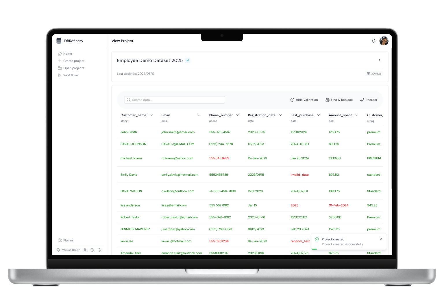 DBRefinery has made data cleaning so much easier. The built-in algorithms help us quickly identify and fix issues in our datasets. The integration with PostgreSQL is seamless.